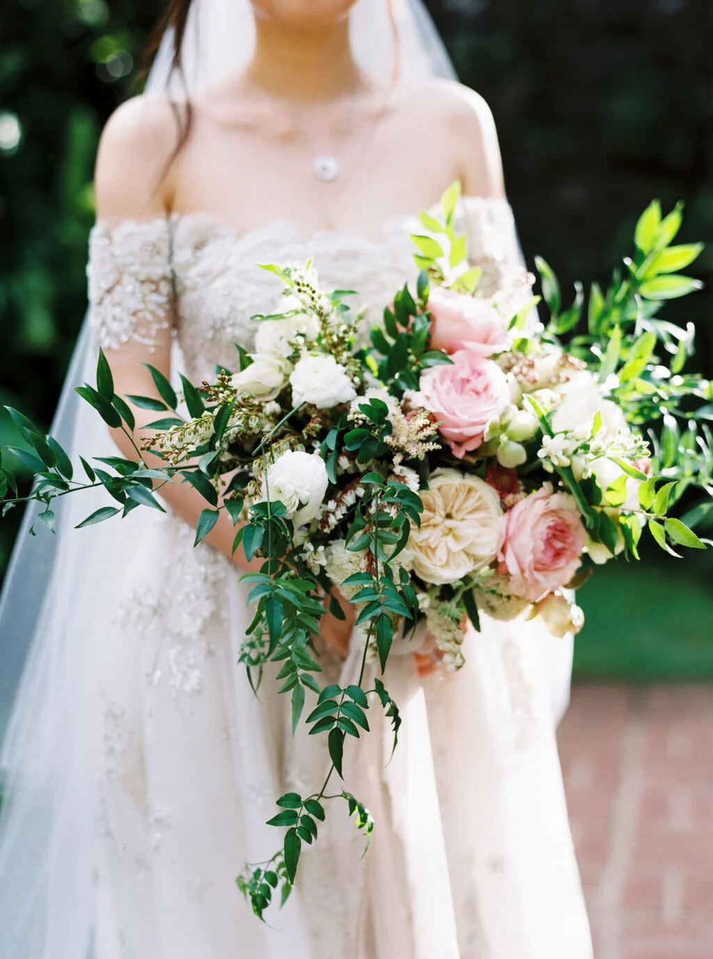 Ornate crystal glassware, Italian ruscus and blush roses, refined wedding stationery and layers upon layers of tulle.